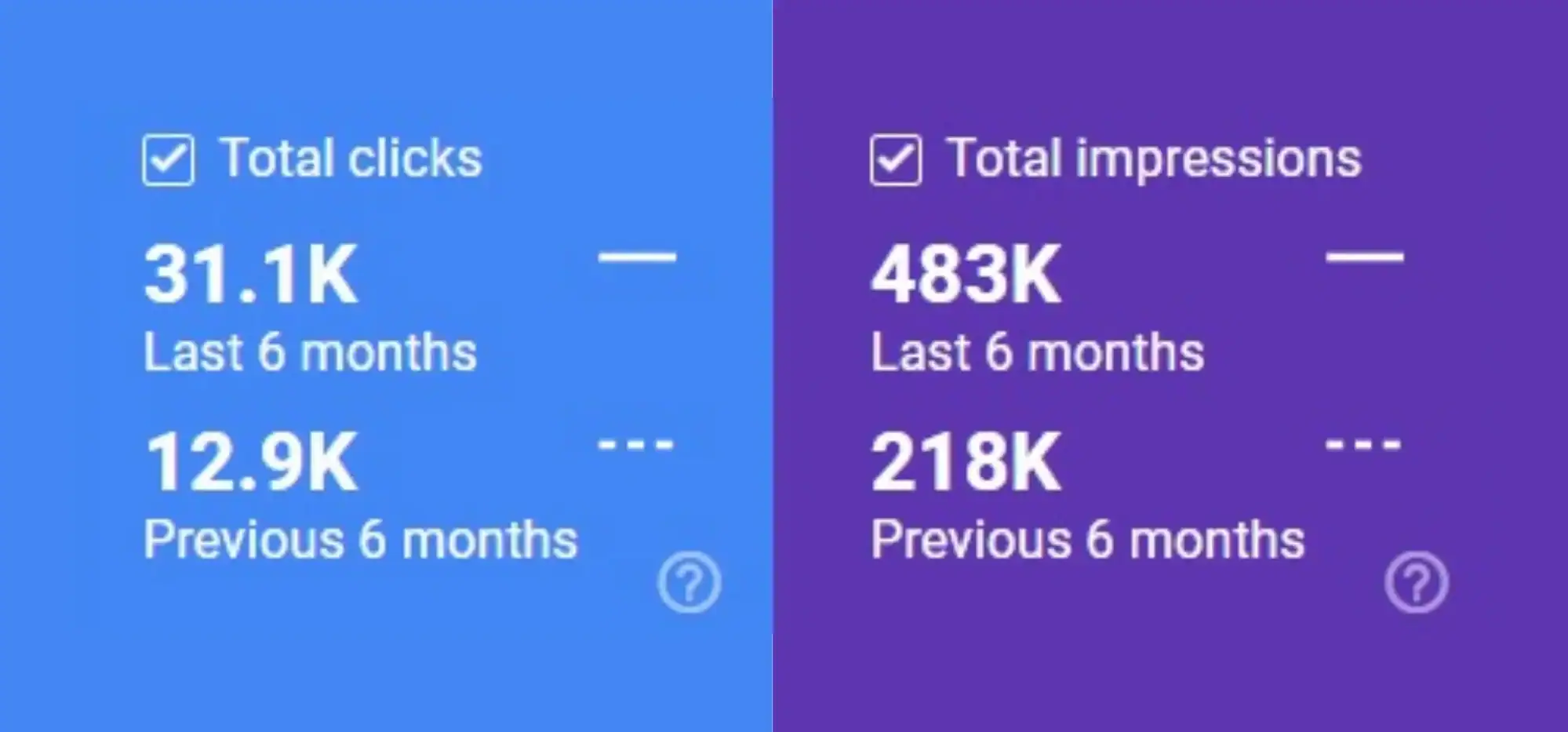 Through targeted SEO strategies, we boosted the site clicks by over 140% (from 12,900 to 31,100 in 6 months) and impressions by over 120% (from 218,000 to 483,000).
